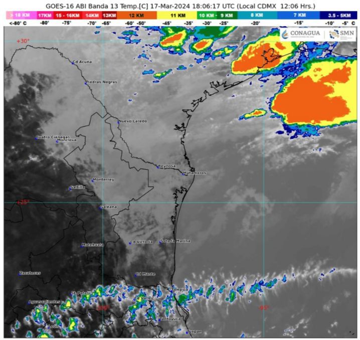 Para Reynosa, se pronostica cielo nublado con lluvias débiles, temperaturas de alrededor de 26 grados centígrados, vientos del noreste con una velocidad media de 20 a 40 kilómetros por hora durante la tarde-noche del domingo.
