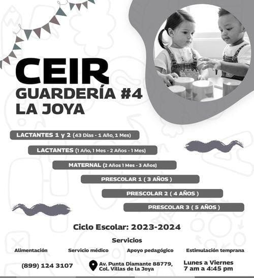 La guardería número 4 está ubicada en avenida Punta Diamante s/n, en la colonia Villas de la Joya, con el número telefónico 8991243107.