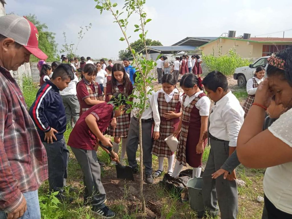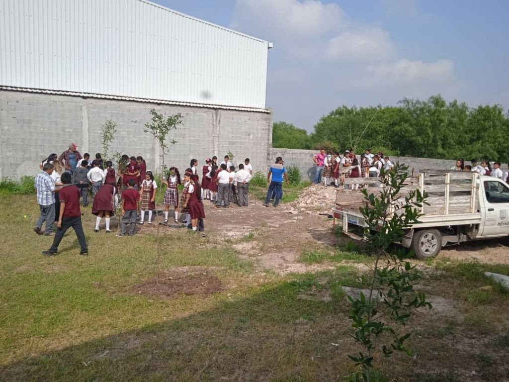 En este sentido, se reforestó la Escuela Primaria Frida Kahlo del Fraccionamiento Los Fresnos, en conjunto con alumnos y maestros