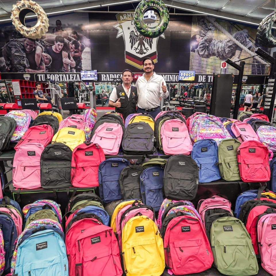 El Presidente Municipal recibió más de 200 mochilas, cada una con un kit escolar, a través del programa Reto Útil, donación que fue entregada por David Montes Guillermo, Director del gimnasio Sport Training, como apoyo para niños estudiantes de escasos recursos económicos.