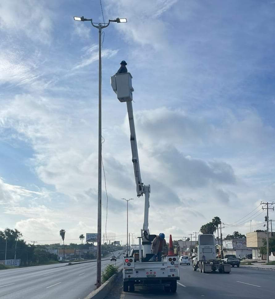 Por instrucciones del Presidente, Carlos Peña Ortiz, cuadrillas de la Dirección de Alumbrado Municipal recorrieron la carretera Reynosa-Río Bravo, donde instalaron nuevas lámparas y ofrecer mayor seguridad al tránsito vehicular.
