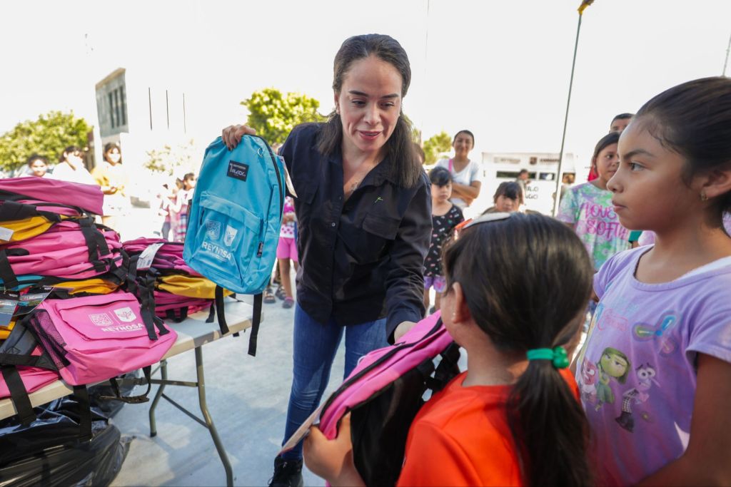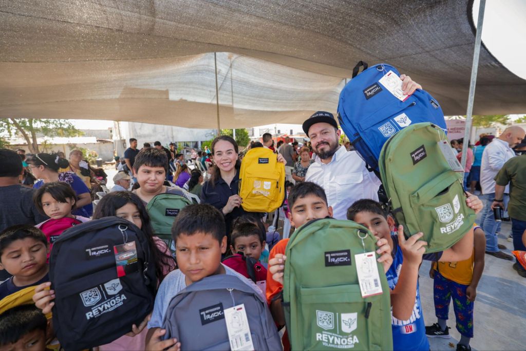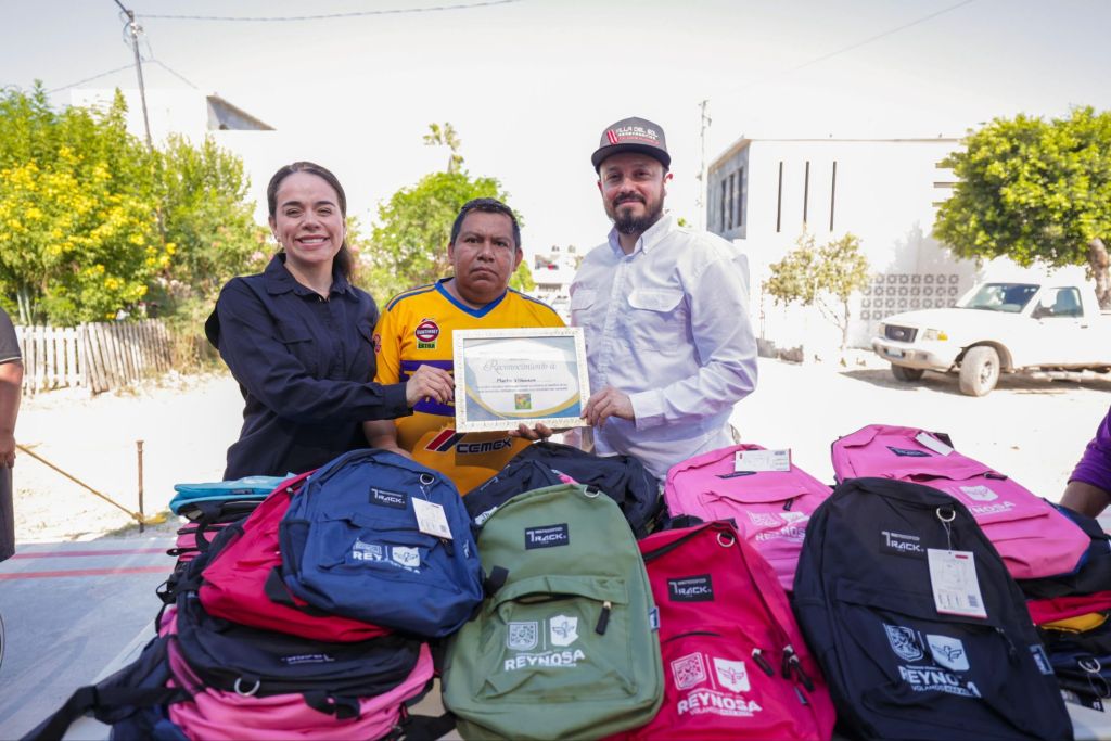 Por la confianza del sector empresarial en el Gobierno de Reynosa, Martin Villanueva y Karla Fabiola Torres Romero, representantes de Villa del Sol Construction LLC, donaron 500 mochilas para los niños y niñas que acudieron a la brigada, lo que fue un gran apoyo para las familias, y una muestra de solidaridad hacia los reynosenses.