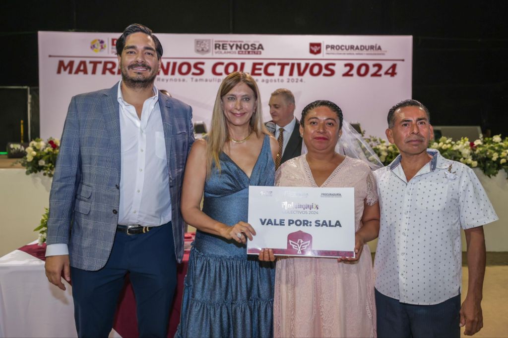 - Atestiguaron formalización del amor y fortalecimiento de las familias reynosenses el Presidente del Patronato DIF-Reynosa Carlos Luis Peña Garza y la Senadora electa Maki Esther Ortiz Domínguez.