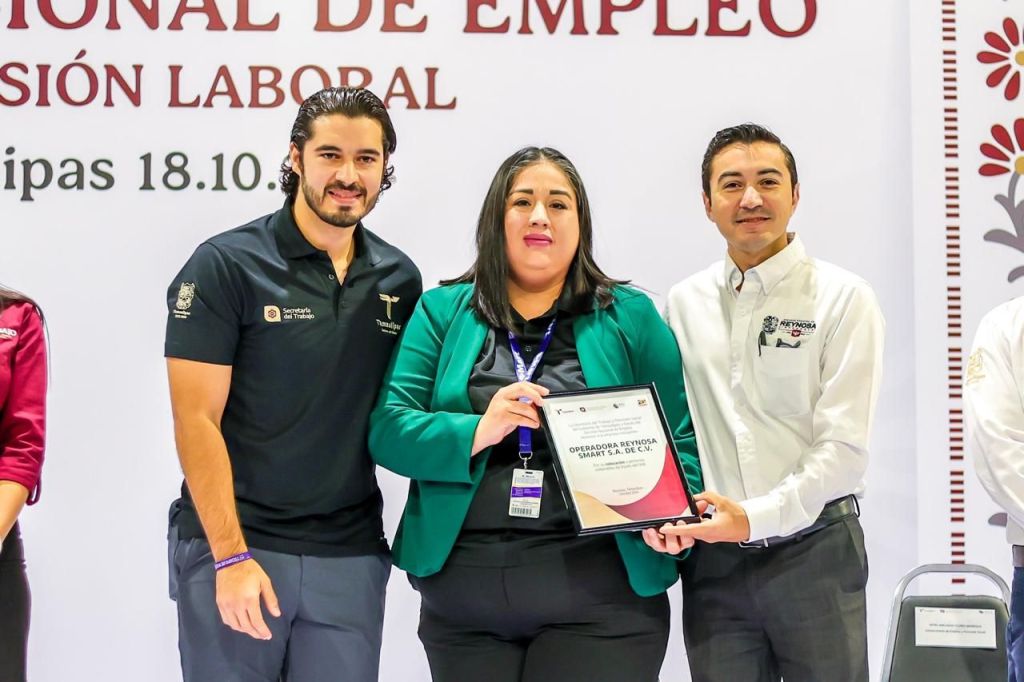 El evento se llevó a cabo este viernes 18 de octubre en el Centro de Convenciones de esta ciudad, con la presencia de Beatriz Del Toro Cázares, Directora General del Servicio Nacional del Empleo en Tamaulipas; Abelardo Flores Mendoza, Subsecretario de Empleo y Productividad en el Estado; Selene Villalobos Cruz, Secretaria de Trabajo y Previsión Social en Reynosa y Felipe Rodríguez García, Coordinador Regional del Servicio Nacional del Empleo en Reynosa.