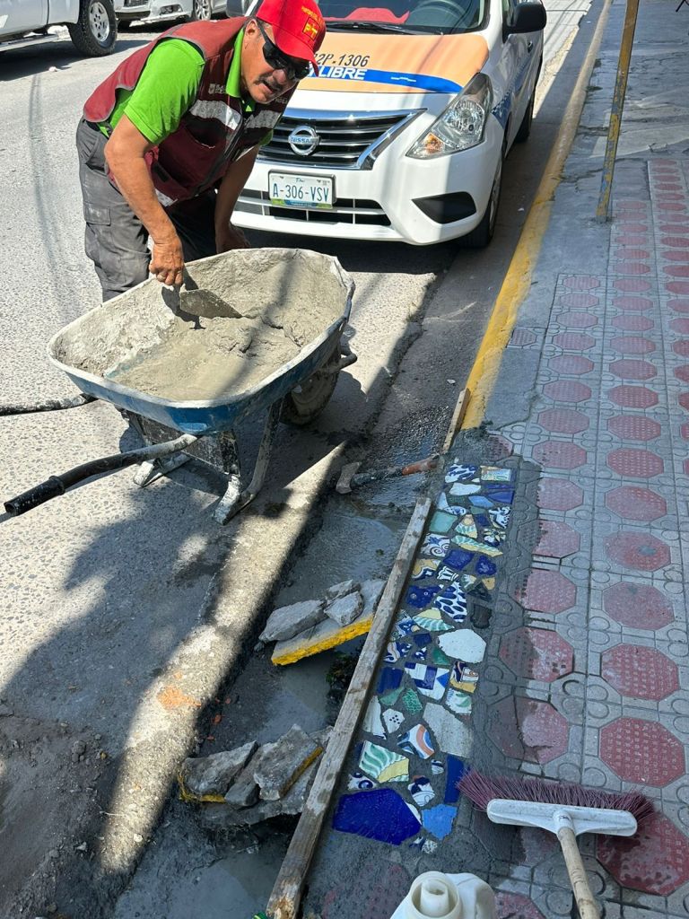 Esta labor enfocada mantener y mejorar la infraestructura de la ciudad es aplicada en todos los sectores de nuestra ciudad, incluyendo la limpieza, y la intervención de banquetas que han sido fragmentadas por lo que se aprovecha añadir detalles estéticos a esos tramos.