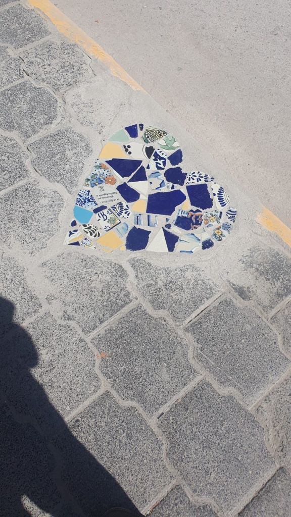 Los empleados de Servicios Públicos Primarios aplican piezas y pedacería de azulejo y talavera para reparar los daños y que además de ser funcional el corredor público logre un toque estético, agradable a la vista de los peatones.