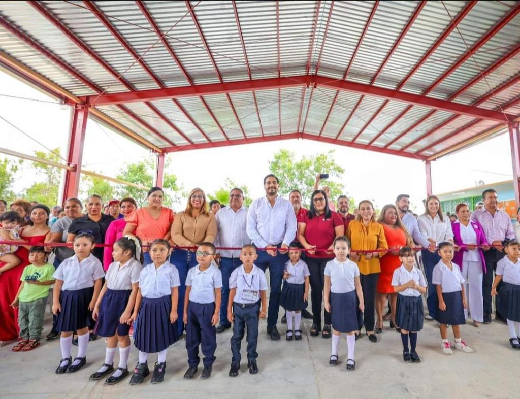 El Alcalde Carlos Peña Ortiz inauguró, junto con niños, padres de familia y Maestras del Kinder Federico Froebel, la techumbre de 480 metros cuadrados, en la que se aplicó un presupuesto de 2 Millones 274 Mil 713.61 Pesos del Plan de Obra Más Grande en la Historia de Reynosa, para beneficio de los más de 100 pequeños alumnos y sus instructoras de educación inicial.