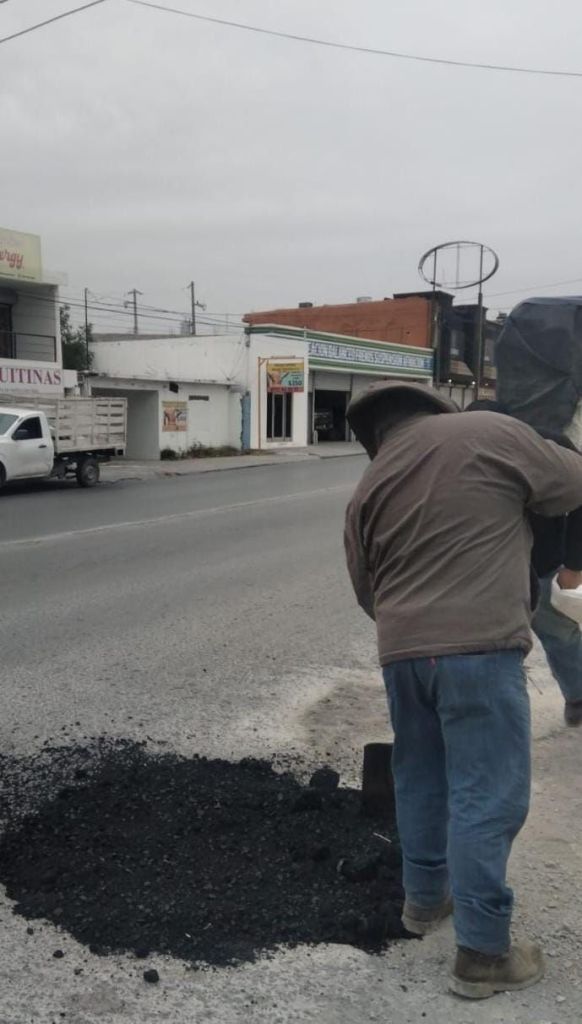Otro grupo de trabajadores llevó a cabo la reparación de baches con carpeta fría, en la calle Rosalinda Guerrero con 5 de Febrero, en la colonia Longoria, buscando optimizar la circulación vehicular de la zona y mejorar también la seguridad para los peatones.