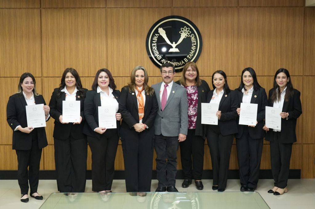 El rector de la Universidad Autónoma de Tamaulipas, Dámaso Anaya Alvarado, entregó nombramientos a las titulares que integran las áreas de la Dirección General de Familia UAT, deseándoles éxito en las tareas que desempeñan como parte de los diversos programas que ofrece la casa de estudios al servicio de la niñez y juventud.