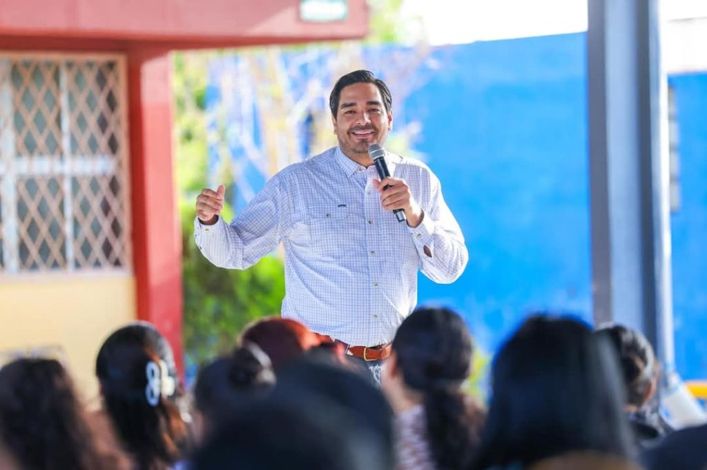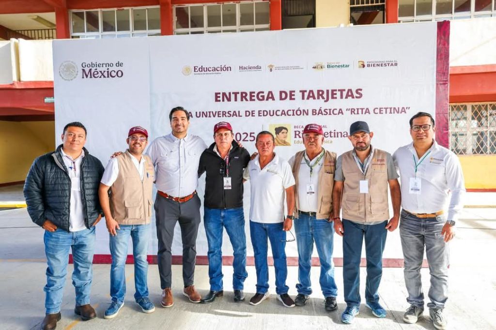 «Esta Beca es universal, para todos, sin diferencia, para que la educación sea un verdadero derecho para todos los mexicanos», dijo el Alcalde acompañado por el Director de la escuela, Marco Aurelio Alejandro Ríos.