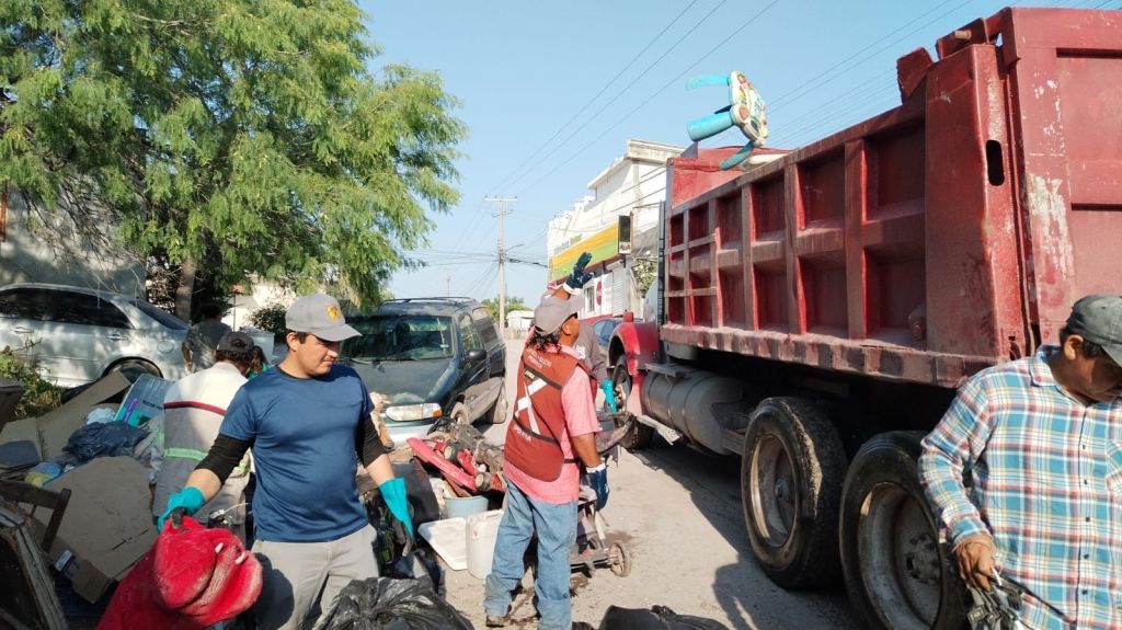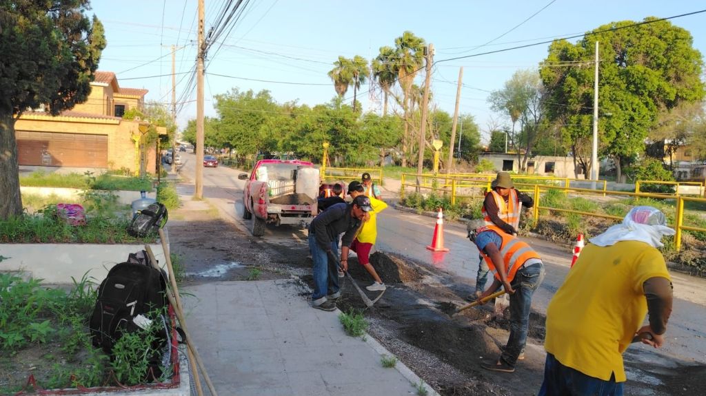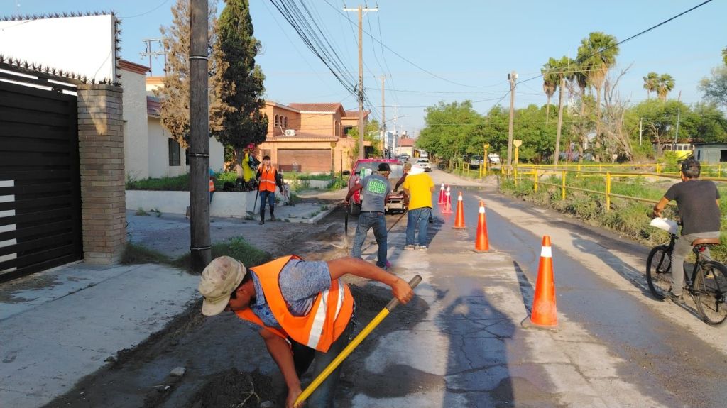 Cuadrillas de R. Ayuntamiento realizan limpieza del bulevar Hidalgo y Fuente de Diana, recolección de cacharros en calles Turquesa y Marrón de la colonia Arcoiris; barrido y retiro de cacharros en bulevar Miguel Alemán y actividades de desazolve que realiza personal de Obras Públicas y de la COMAPA en calle Bernabé Sosa y Matías Canales de la colonia Ribereña.