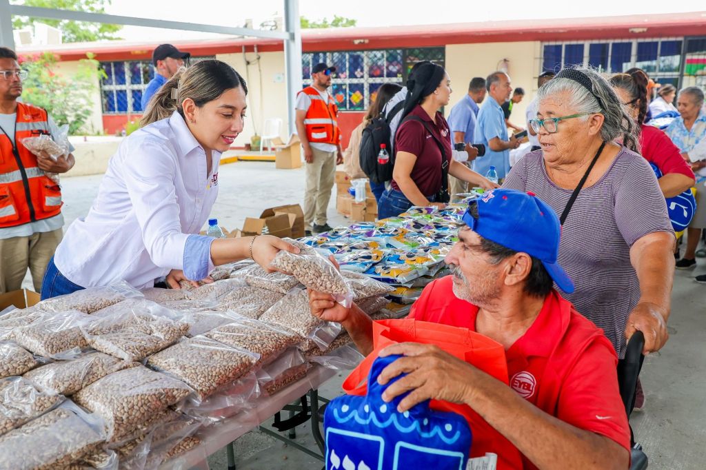 «Es importante que revisen los programas y beneficios disponibles para ver cómo pueden recibir apoyo para ustedes y su familia», recalcó, y junto con la Directora del DIF, Gabriela Rosas Blanco y el Secretario de Bienestar Social, Héctor Alejandro Olivares Zavala inició con la entrega de paquetes alimentarios, y de productos donados por la Secretaría de Economía del Gobierno de la Doctora Claudia Sheinbaum.