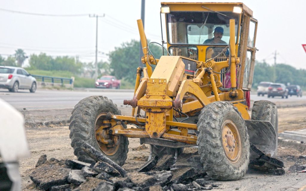Mediante la aplicación de recursos del Programa De Regularización de Vehículos Usados de Procedencia Extranjera, el Alcalde Carlos Peña Ortiz dirige una obra de rehabilitación de pavimento asfáltico en la carretera Río Bravo-Reynosa, entre la avenida 20 de Noviembre y calle Rubén.