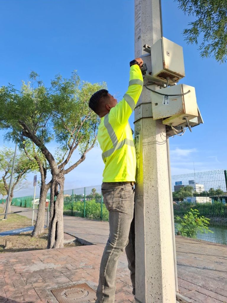 A la vez cuadrillas de Alumbrado Público reparan sistema de iluminación en la colonia Fundadores por el libramiento Reynosa-Monterrey; en el jardín de niños Ignacio Allende en la colonia Las Cumbres; así como rehabilitación de alumbrado e instalación de arbotantes del bulevar Hidalgo.