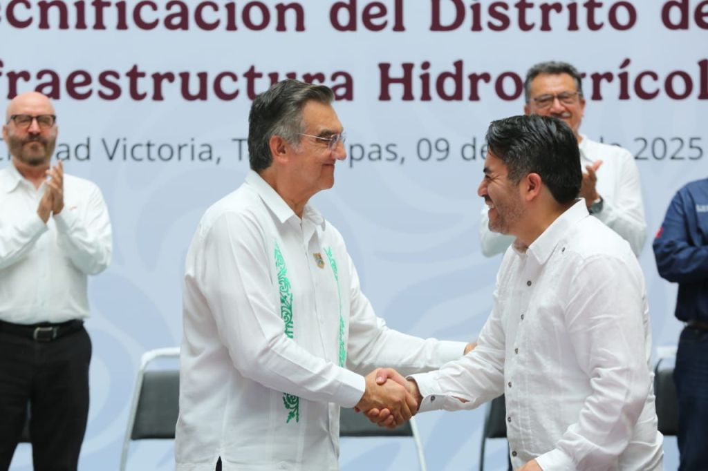 Ciudad Victoria, Tamaulipas.- En un hecho histórico y trascendental para la modernización del campo tamaulipeco, y en cumplimiento de uno de los 100 compromisos establecidos por la presidenta de México, Claudia Sheinbaum Pardo, orientado a tecnificar más de 200,000 hectáreas para riego agrícola, este lunes se firmó el Convenio para la Tecnificación del Distrito de Riego 025 Bajo Río Bravo, por el director general de la Comisión Nacional del Agua (Conagua), Efraín Morales López, y el gobernador de Tamaulipas, Américo Villarreal Anaya. Además, se llevó a cabo la Entrega de Apoyos para la Infraestructura Hidroagrícola en el estado con un monto de 388 millones 206 mil pesos.