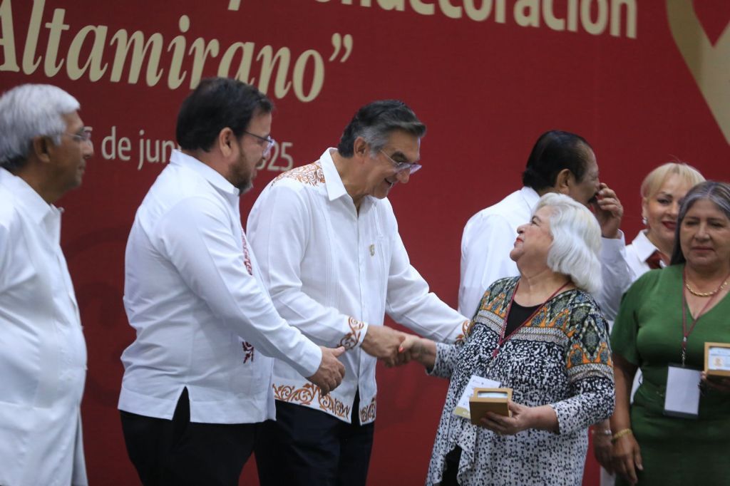 “Refrendo nuestra coincidencia en que la educación pública esté siempre al servicio de la niñez, de una mejor sociedad y de una nación con justicia y siempre libre, independiente y soberana. Ustedes guardan esos principios”, expresó el mandatario tamaulipeco en la ceremonia de condecoración celebrada en el Polyforum de esta capital.