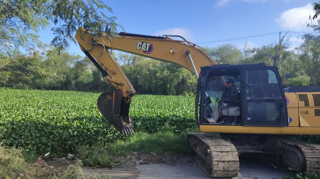 La Secretaría de Servicios Públicos del Gobierno de Reynosa lleva a cabo el desazolve del dren y saneamiento de la calichera en la colonia Balcones de Alcalá, en base a instrucciones del Presidente Municipal Carlos Peña Ortiz.