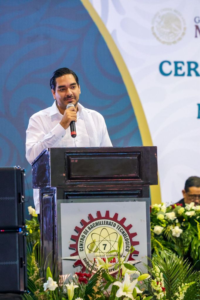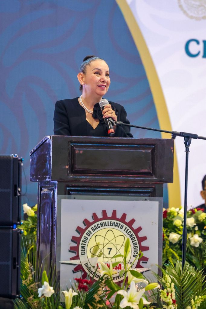 «Felicidades a todos los graduados el día de hoy, por el gran sacrificio que han hecho para llegar a este día tan importante y el día de hoy culminan una nueva etapa de su desarrollo educativo», declaró el Alcalde Carlos Peña Ortiz en la graduación de estudiantes del CBTIS 7 que dirige la Dra. Brenda Lilia Godina Tovías.
