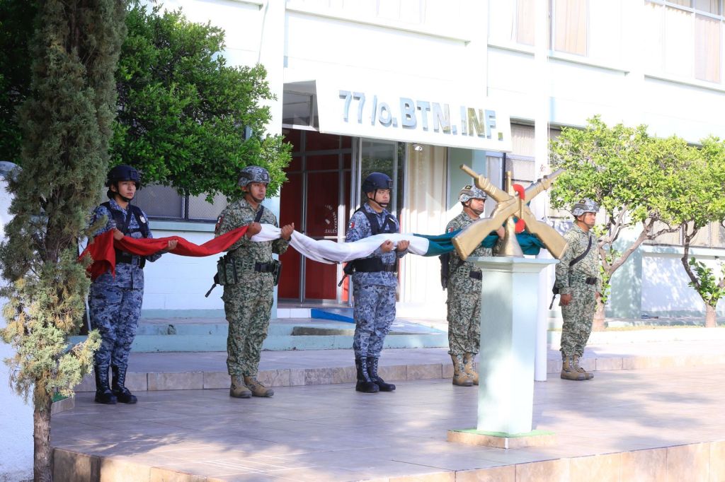 Al presidir la ceremonia de honores, este lunes, en el 77 Batallón de Infantería, el gobernador agradeció al general Enrique García Jaramillo, comandante de la 48 Zona Militar, por la suma cotidiana de mandos y tropas para que Tamaulipas sea uno de los estados que más avanza en seguridad.