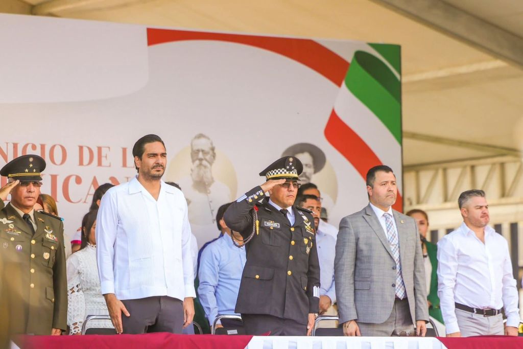 Con la participación de 35 contingentes, encabezados por el Ejército Mexicano, los asistentes apreciaron los vehículos y equipos tácticos de las Fuerzas Armadas, la Guardia Nacional y Guardia Estatal, y sobre todo los números artísticos y deportivos de las escuelas de la localidad.