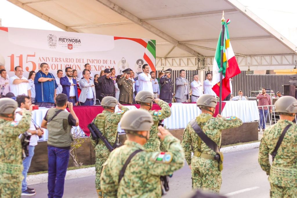 Los reynosenses disfrutaron este jueves 20 de noviembre el Desfile Conmemorativo del 115 Aniversario del Inicio de la Revolución Mexicana, con el Alcalde Carlos Peña Ortiz, su esposa Alejandra Yelitza Garza, y el Coronel de Caballería Marco Antonio de la Fuente Barragán, Comandante del Décimo Noveno Regimiento de Caballería Motorizado de la Octava Zona Militar.