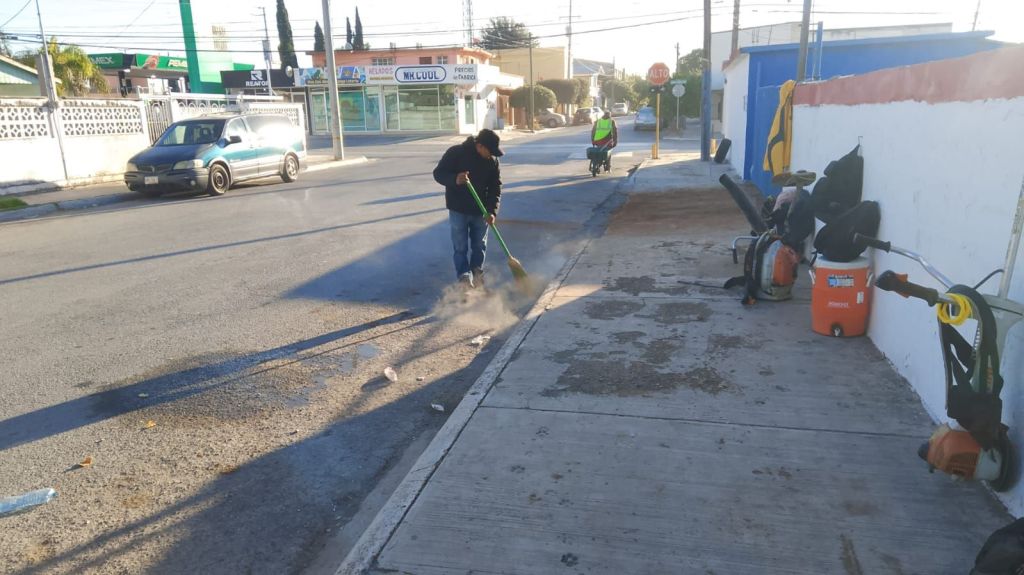 Esta mañana del miércoles 14 de enero se ejecuta la limpieza en Parque Treviño Kelly. Se realizó el barrido y raspado de cordones y banquetas exteriores del parque. Jornada de Limpieza en colonia Villas de Imaq. Se inició la jornada de limpieza en la calle Villa Colibrí y Avenida Verano.